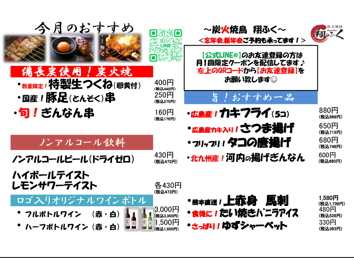 2024.06.25 その他 【炭火焼鳥 翔ふく】10周年! 2024年6月25日で当店は丸10周年を迎えました!これからも地域の皆様に愛されるお店創りを目指して日々の営業頑張ります。今後ともよろしくお願い致します。 ≫ PDFを開く